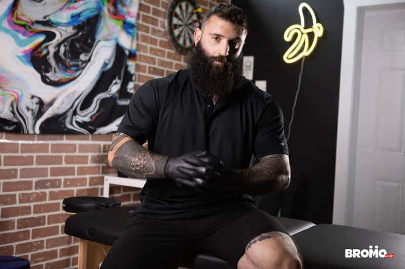 When Lev sees the tattoo artist Markus Kage’s bulge through the hole in the table, he decides he wants some dick first.