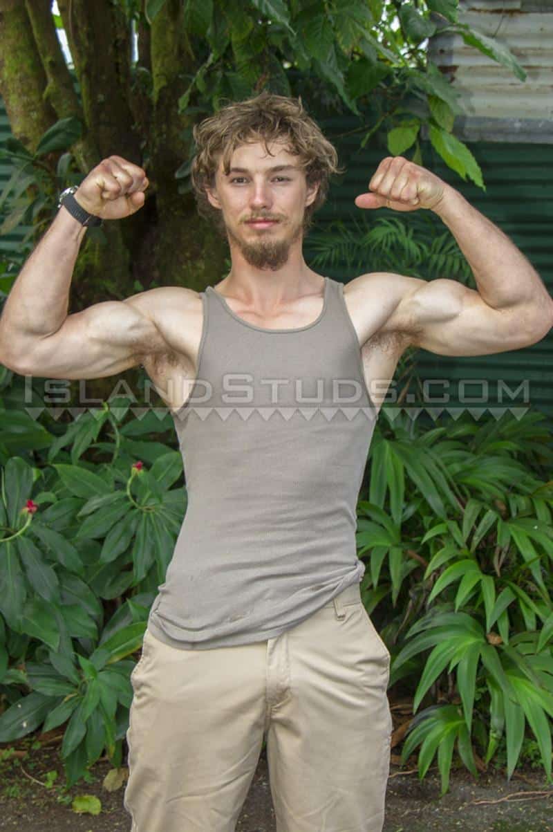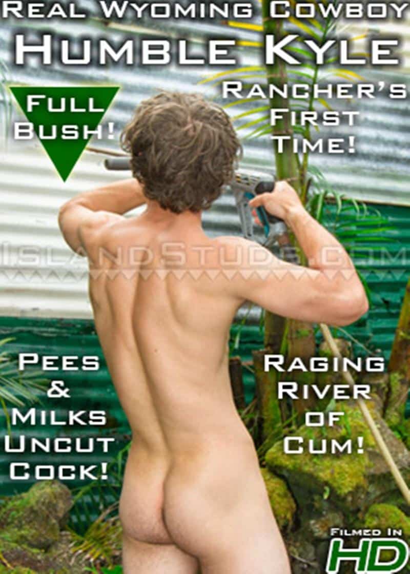 Island Studs says: Shy shaggy farm boy, Kyle is an uncut rugged, ripped, bearded soft-spoken ranch hand from Wyoming with a full bush of dark masculine dick hair who poses and flexes his great pecs, biceps, and washboard, 8 pack of ab muscles.