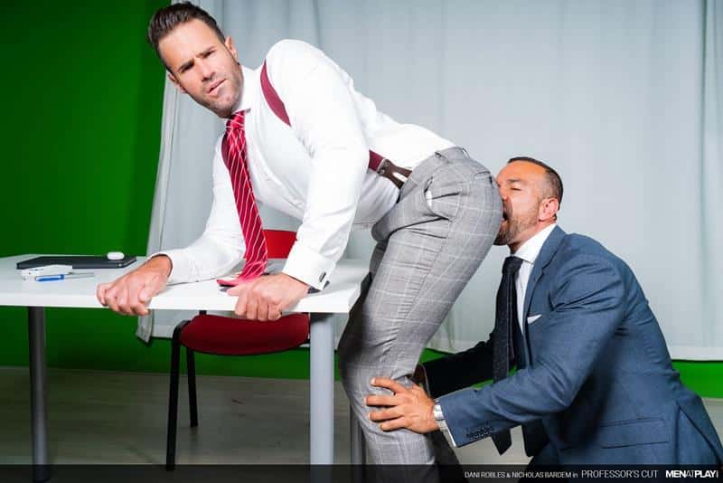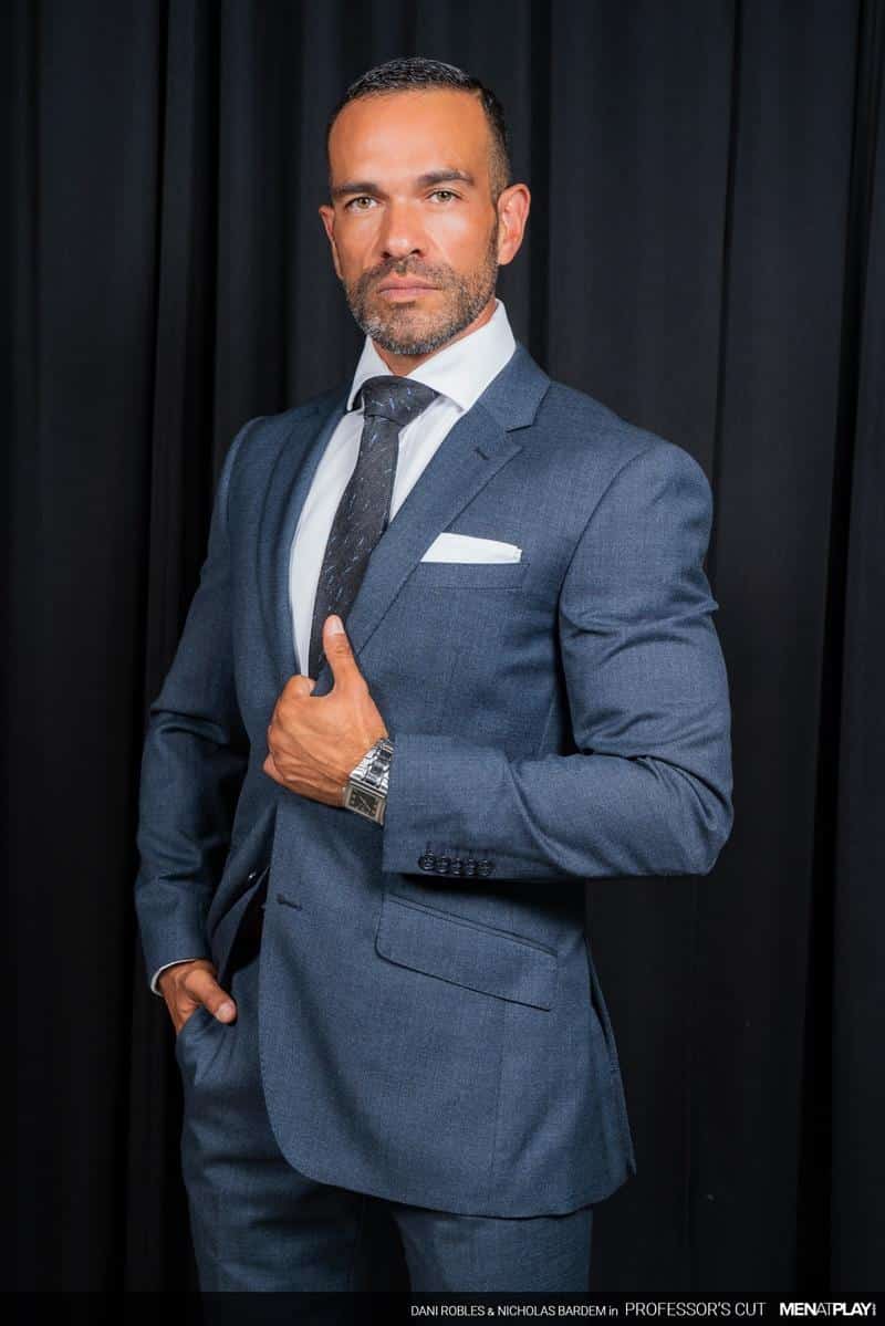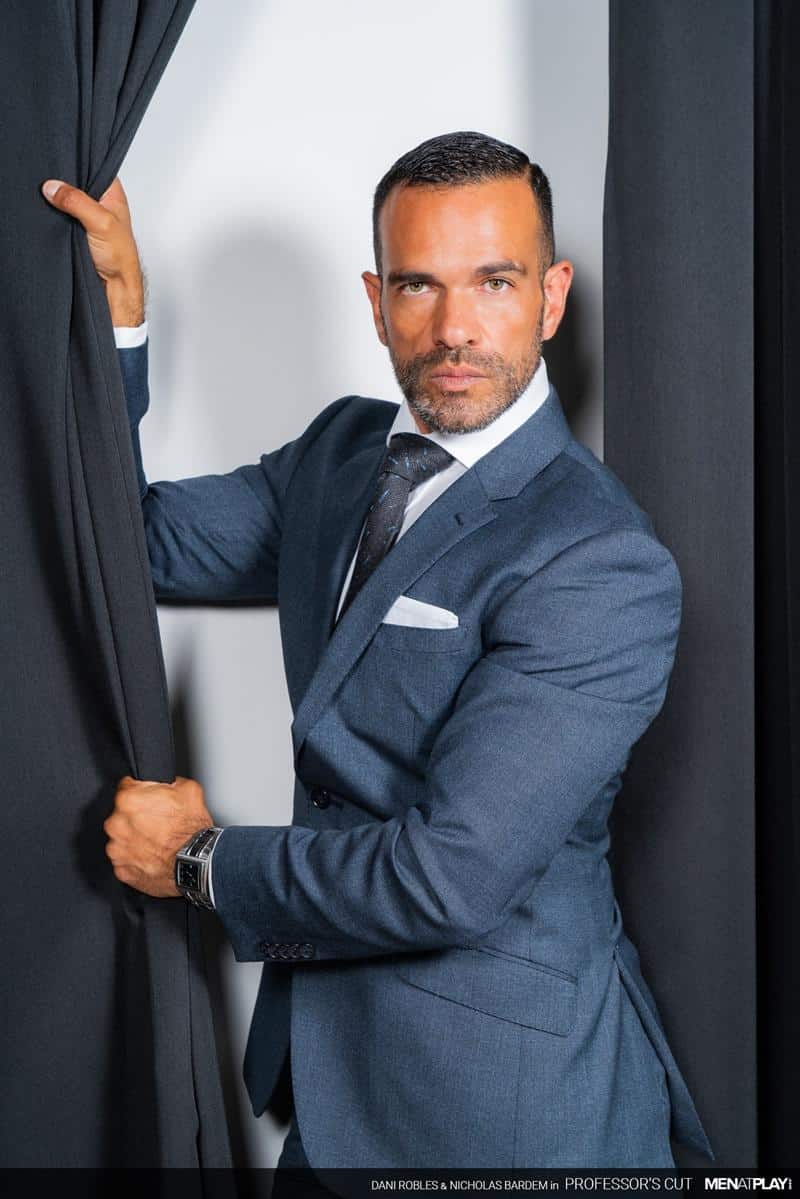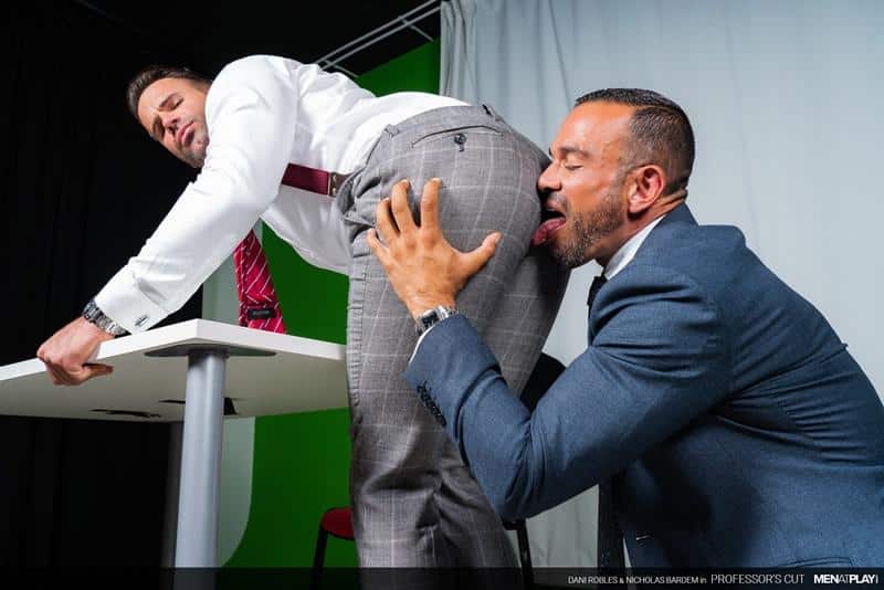 Men at Play hot bearded bottom stud Dani Robles’s bubble butt bareback fucked by hot daddy Nicholas Bardem