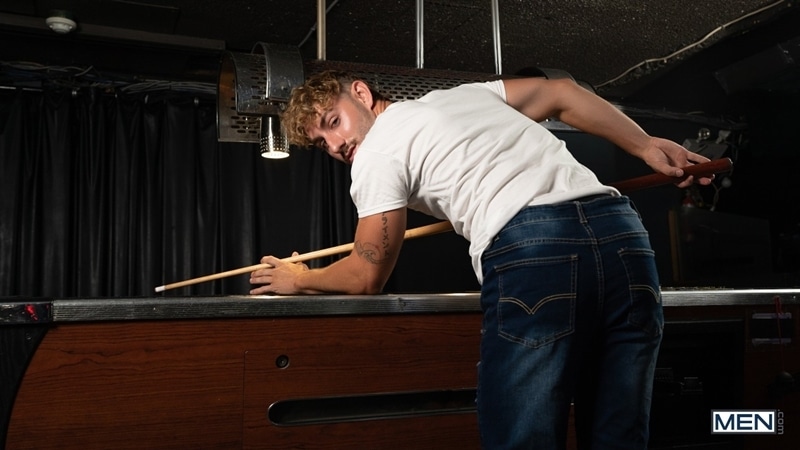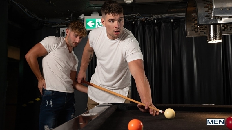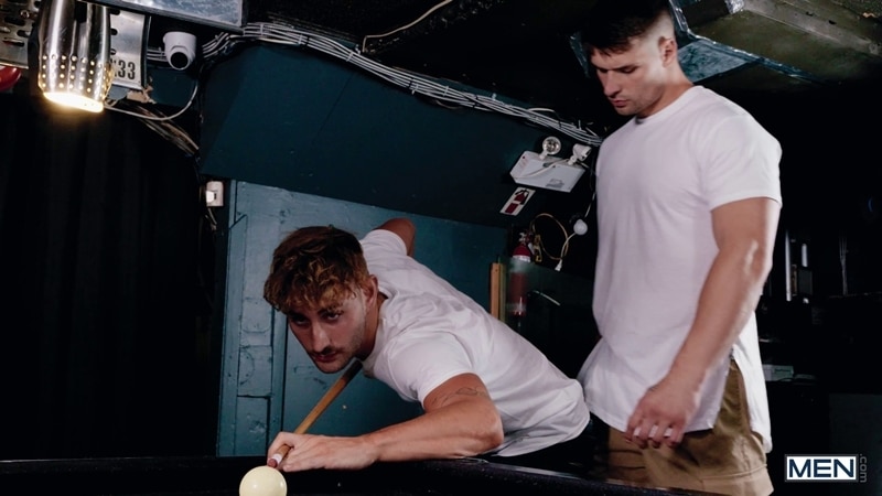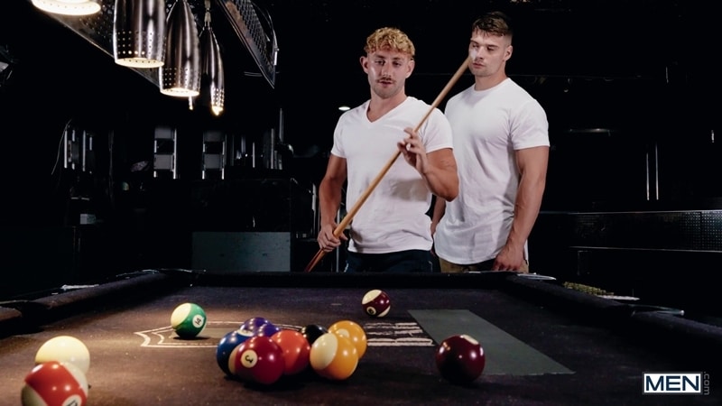 It’s the first time that coworkers Jackson Cooks and Malik Delgaty have been hanging out outside work, and as they play darts, Jackson takes the opportunity to kiss Malik as much as possible. Malik examines the shorter guy’s sexual organs while Jackson smashes the table. But Jackson can’t help but make Malik’s genitals hurt and ruin his next shot. Malik decides to teach Jackson the lesson of his life, by drilling him on the table, then flipping him over to fiss him in the face. Jackson wants more, and gets to all fours for Malik to smudge him on the green felt, then bounces around on the big cock till he cums. Malik informs Jackson they’re not finished yet. He gives him every inch of his back, before cumming Jackson’s face.