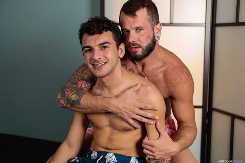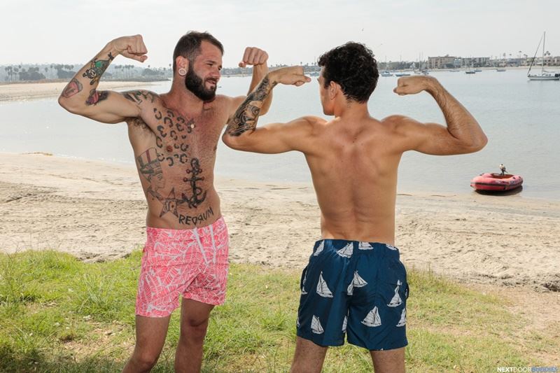 Next Door Buddies says: Young ripped stud Daniel Greene has spent the day at the beach with hot bearded tattooed hunk Johnny Hill.