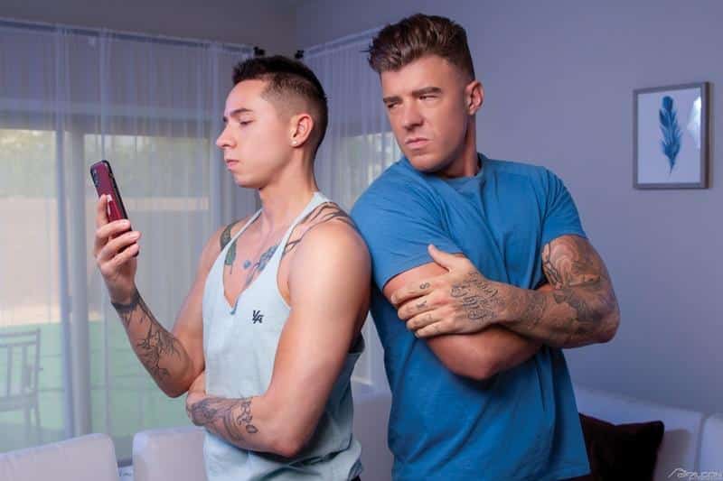 Raging Stallion says: Vincent O’Reilly has been glued to his phone throughout his entire date with JJ Knight, and he sure isn’t happy about it.